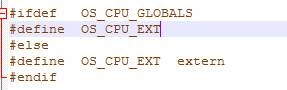 在OS_CPU_C.C中定义宏OS_CPU_GLOBALS,表示在编译OS_CPU_C.C时,定义os_cpu.h中的全局变量,其它C文件在引用os_cpu.h时不能定义OS_CPU_GLOBALS,编译时只是声明全局变量。