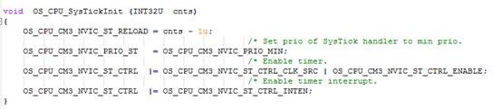 在函数中调用时钟节拍函数OSTimeTick(),把延时时间到的任务置为就绪态。调用OSIntExit()函数,退出中断时,执行任务切换。