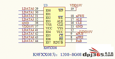 K9F1208的位宽是8,所以GPG15接低电平。