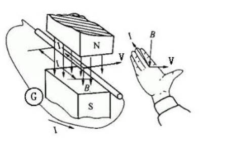 伸开右手,使大拇指和其余4指垂直放在一个平面上,把手心面向N极,大拇指对着导体运动方向,那么4指所指方向就是该导体在磁场中所产生的电动势方向。